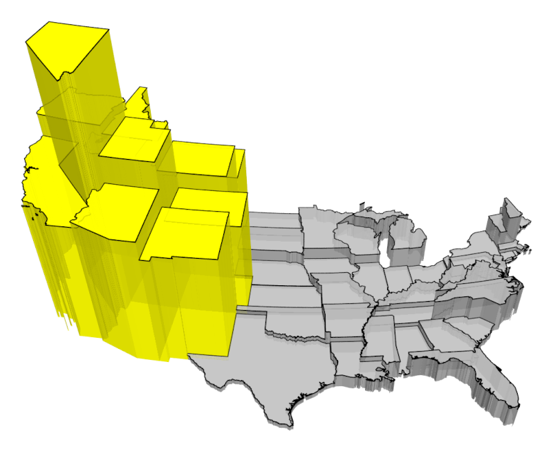 Each state is represented by a three-dimensional prism.