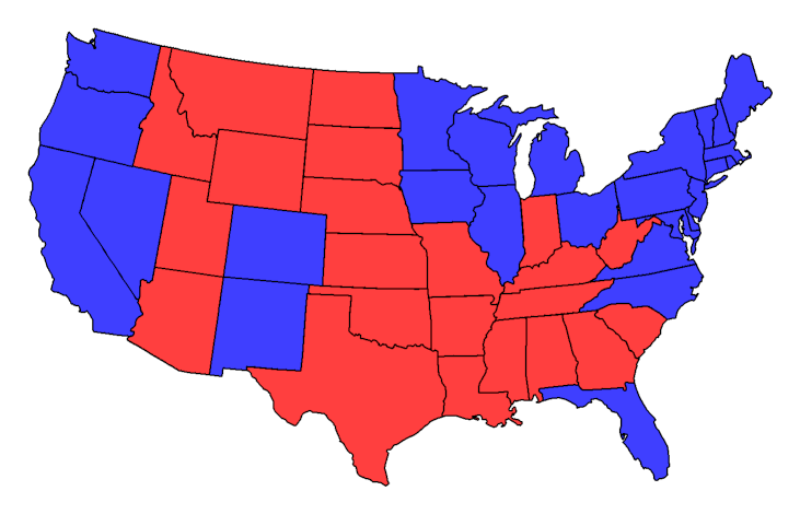 A red-blue coloring of the contiguous states and Washington, DC